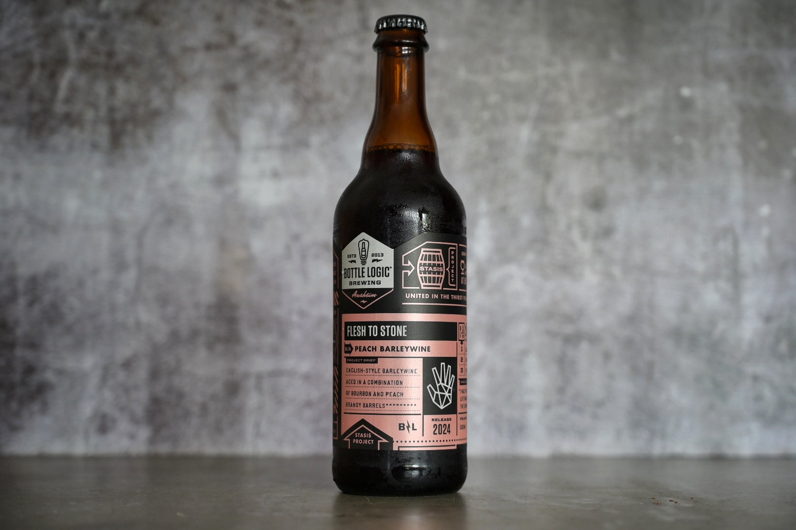 11.5% Barleywine aged in Bourbon and Peach brandy barrels.