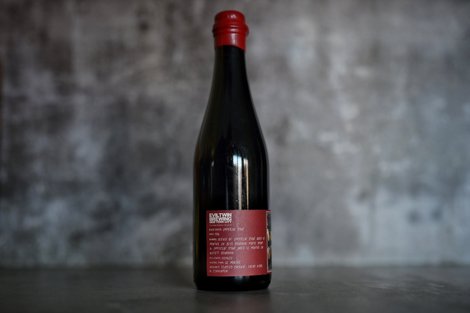 15% Barrel-aged 32 months in Blis Bourbon Maple Syrup barrels & blended with Imperial Stout barrel-aged 32 months in Willett Bourbon barrels. Conditioned on toasted coconut, cocoa, & cinnamon.